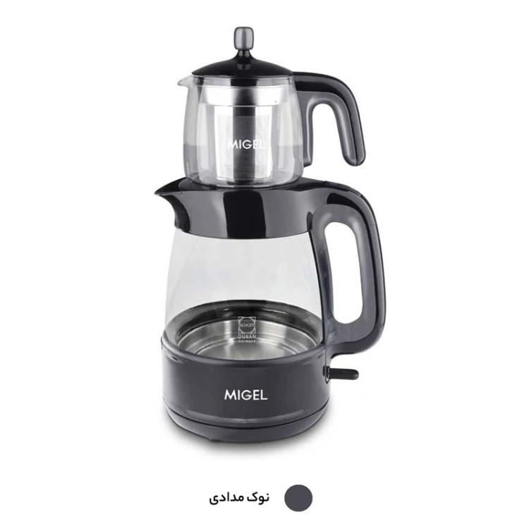 چای ساز میگل مدل GTS 070 جزو چایسازی هایی است که از نظر ظاهری بسیار زیباست و طراحی شکیلی دارد. کتری این چایساز بسیار حجیم است و 2.5 لیتر حجم دارد و قوری این دستگاه نیز 700 میلی لیتر ظرفیت دارد. کتری این دستگاه از جنس شیشه است و از نوع کتری های بی سیم است که قابلیت چرخش 360 درجه ای بر روی کفی را دارد. در کنار چای ساز میگل مدل GTS 070 نشانگر میزان آب تعبیه شده است که در هر لحظه میتوانید میزان آب موجود در کتری را مشاهده کنید. صافی جداشدنی این چایساز از جنس استیل ضدزنگ است و حجم مناسبی دارد. همچنین این محصول دارای قابلیت گرم نگهدار می باشد.