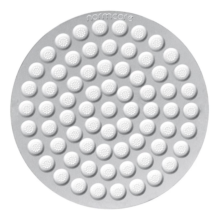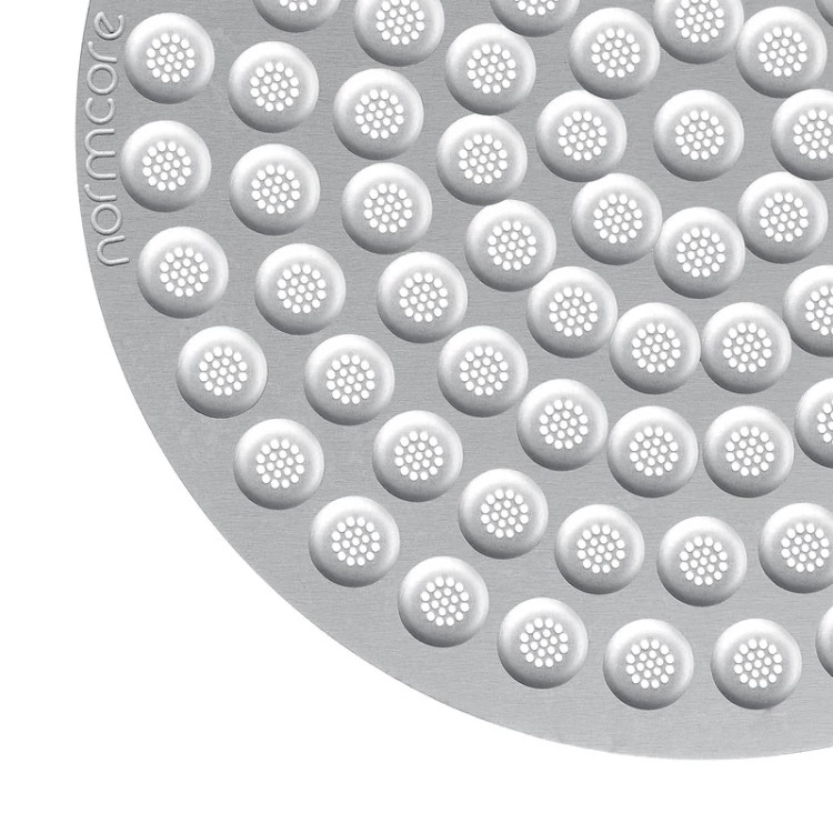 سایر توضیحات: پاک اسکرین الترا اسلیم نسل جدید نورمکور از یک لایه استیل با حفره های روی آن(مطابق تصویر) تشکیل که ضخامت کل آن 0.8 میلی متر (کمتر از یک میلی متر)، و جنس آن استیل 316 می باشد و برای پرتافیلتر دستگاه های خانگی و صنعتی با اندازه 51 میلی متر می تواند مورد استفاده قرار گیرد. نکته اینکه پاک اسکرین را به صورتی روی قهوه قرار دهید که سمت حفره دار به بیرون و سمت صاف و صیقلی در تماس با قهوه باشد. به مارک نورمکور در حاشیه پاک اسکرین دقت شود.