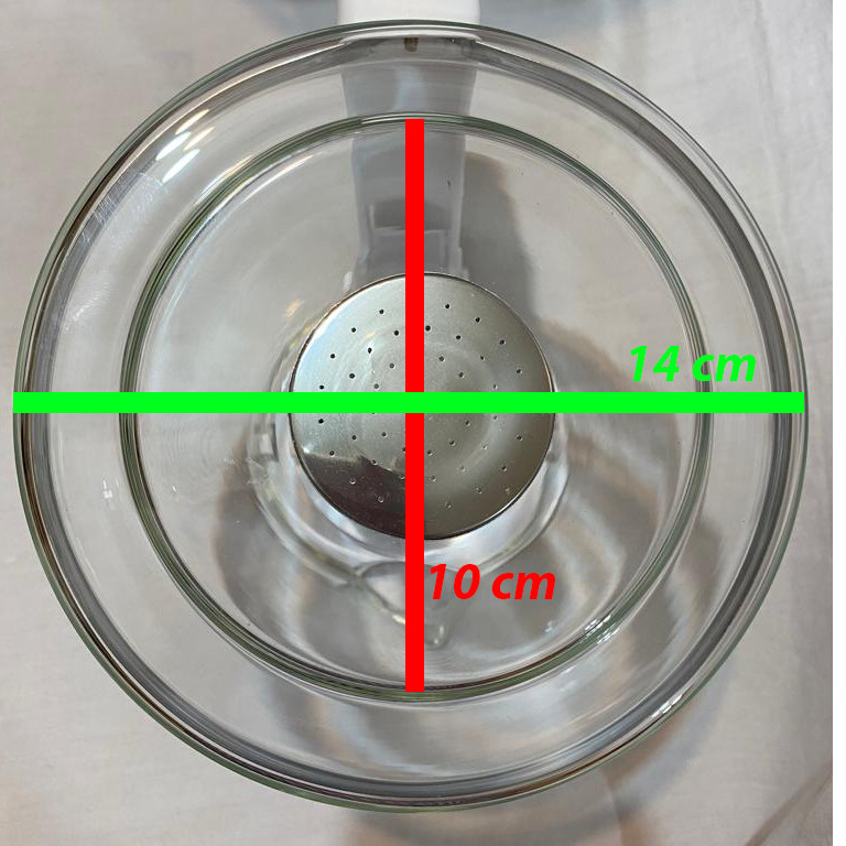 ابعاد قوری به این شرح است=قطر کل کف 14 سانتی متر/قطر قسمت بر آمده ی کف(قسمتی که روی صفحه چایساز قرار میگیرد 10 سانتی متر/قطر دهانه قوری 9 سانتی متر است.